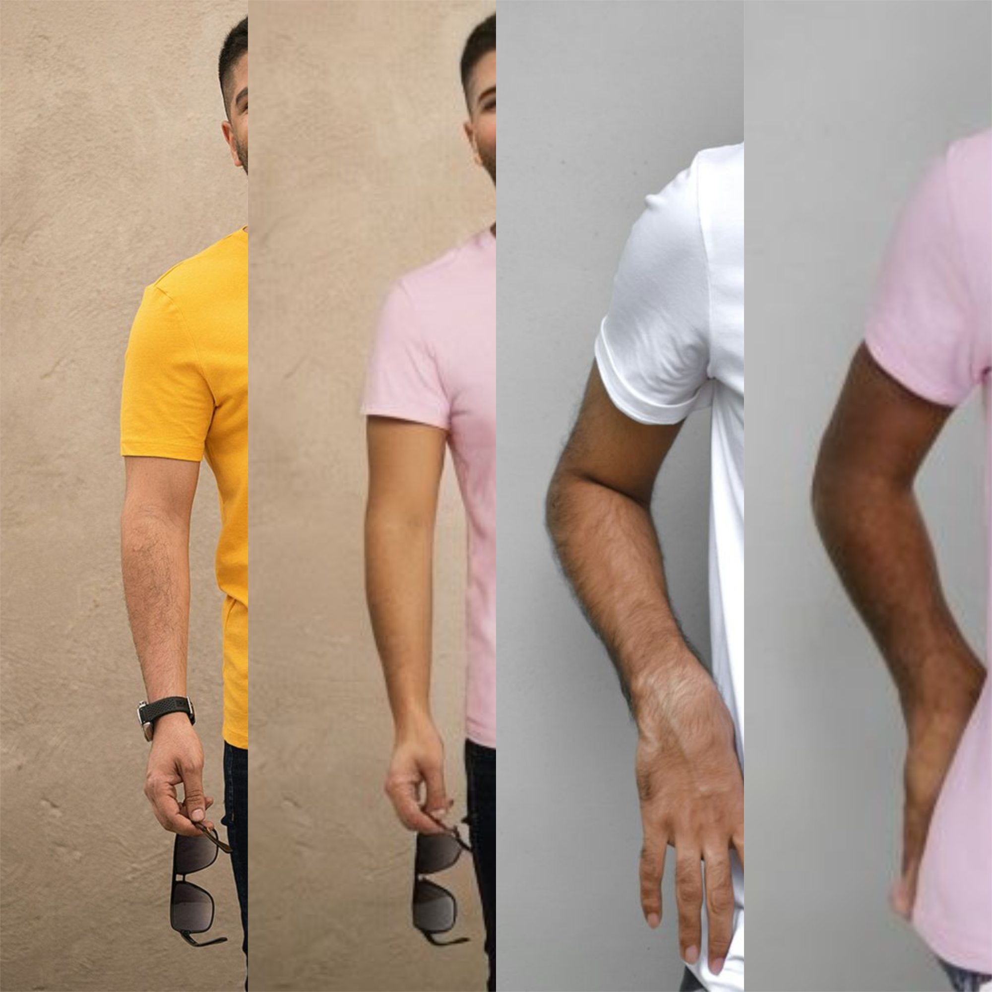 We observed inconsistencies in the color of a single garment across different generations. For example, the gray t-shirt exhibited variations in shade, at times appearing lighter gray or even black.